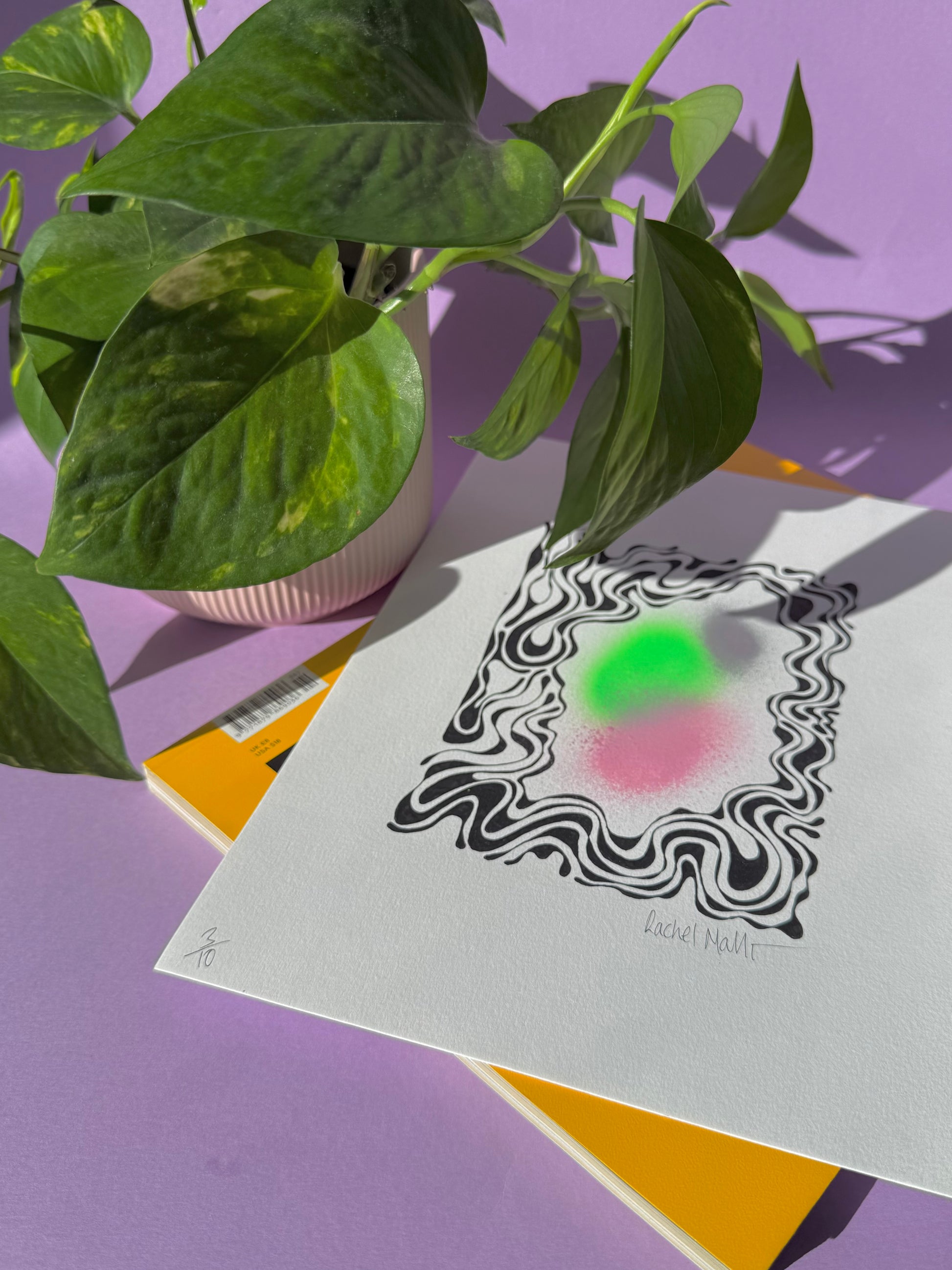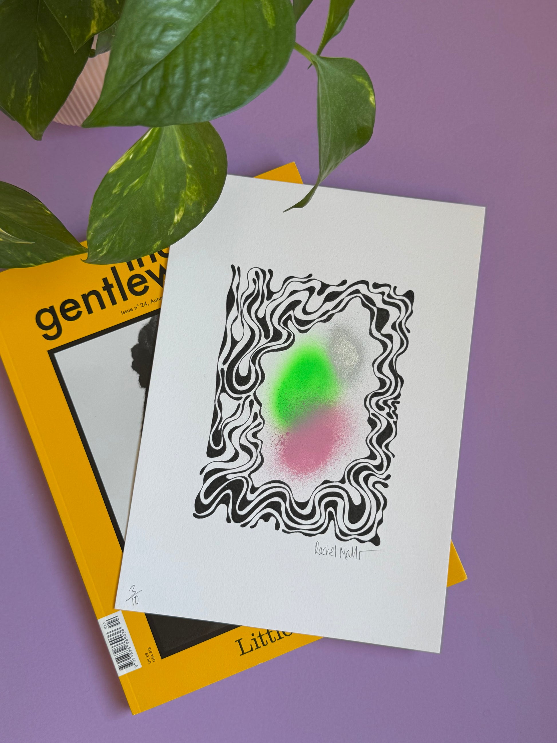 Spray paint and fine line pen on 297 x 210 mm - 200 gsm fine grain - heavyweight - 100% recycled paper